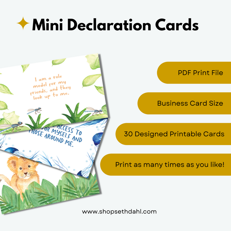 Also available as a business card sized PDF Printable with 25 declarations and 5 customizable designs!