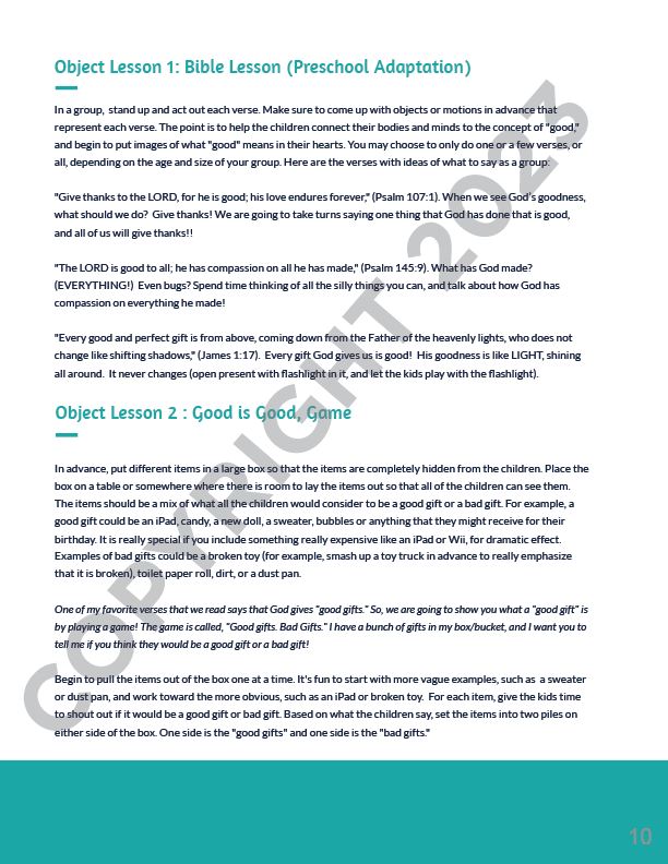 This curriculum was written with small churches and young children in mind. It's small-group friendly - including the budget, time of set up and small number of volunteers. Because of this, it's easy to adapt these lessons for a home environment - be it home school, home church or small group experience.